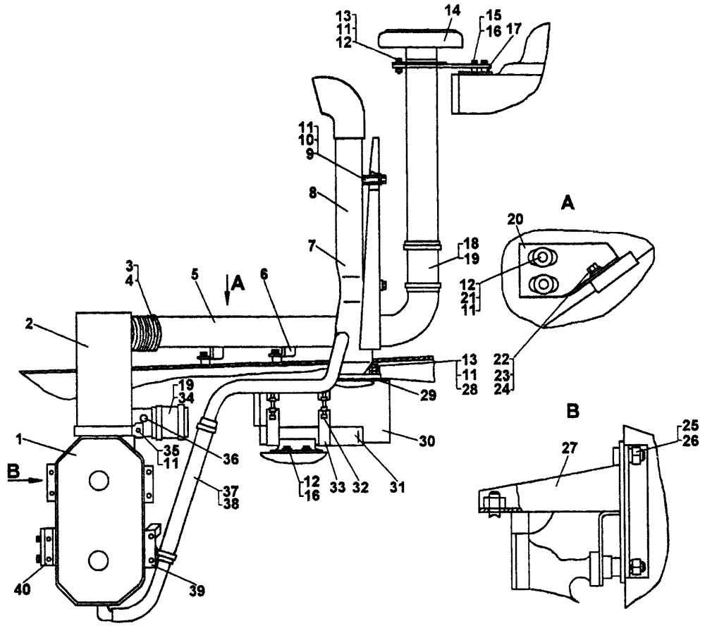 Установка агрегатов систем впуска и выпуска для тракторов, работающих в условиях повышенной запыленности