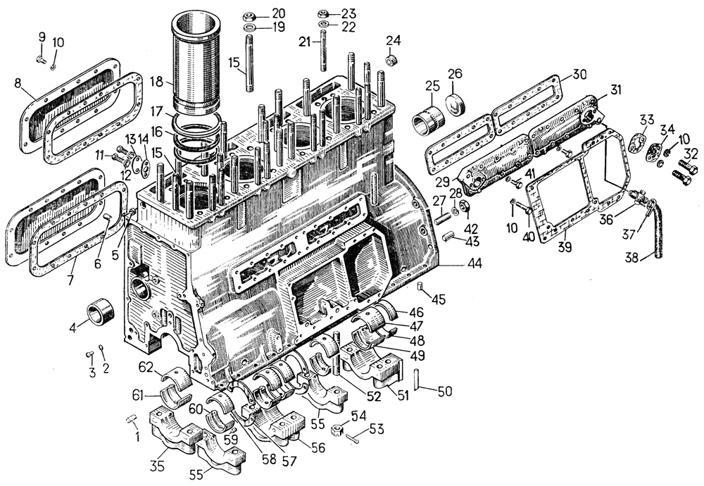 Блок с картером и кожухами