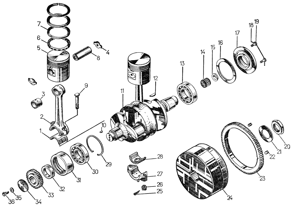 Кривошипно-шатунный механизм пускового двигателя на Т-130