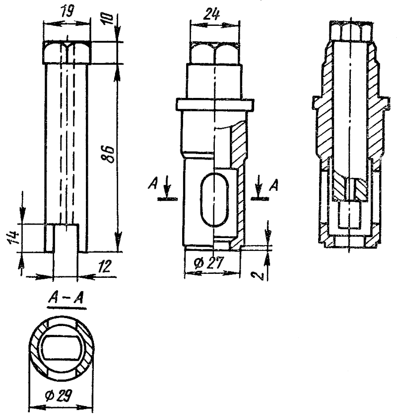 Завертывайте или отвертывайте, контрите гайкой регулировочный хвостовик толкателя специальным ключом ( рис. 179 ), вставленным в приспособление с индикатором или ключами ПИМ-640.200.03 и ПИМ-640.200.04 ( рис. 180 ).