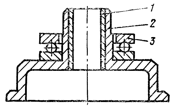 Установите муфту 2 ( рис. 175 ) поверхностью дна тарелки на подставку, запрессуйте втулку 1 и посадите нижнее кольцо подшипника 3 на хвостовик муфты. Смажьте сепаратор с шариками маслом и соберите подшипник на муфте. Проверьте легкость вращения подшипника, прижимая верхнее кольцо рукой к шарикам. Смажьте маслом поверхность втулки муфты, протрите поверхность валика и наденьте муфту регулятора на валик тарелкой в сторону грузов. Муфта должна легко, без заеданий, перемещаться по валику регулятора и поворачиваться на нем.