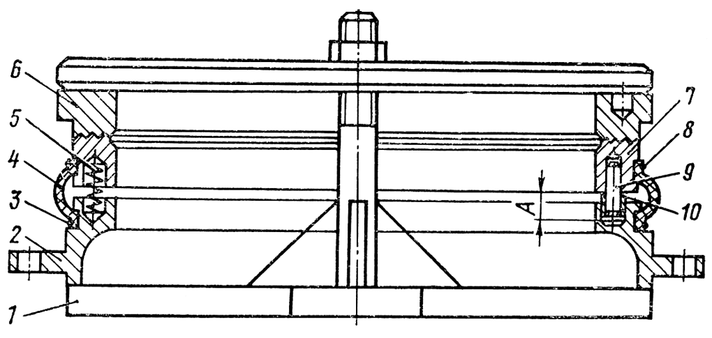 Установите фланец 2 ( см. рис. 242 ) на приспособление А Наденьте на фланец манжету 4 и закрепите ее двумя витками отожженной проволоки 3 диаметром 1,6 мм. Вставьте в отверстия фланца десять пружин 5. Запрессуйте в отверстия диска 7 три пальца 9 с сухариками так, чтобы расстояние А между головкой пальца и поверхностью диска было 20±52 мм. Сухарики должны свободно вращаться на пальцах. Установите собранный диск на фланец так, чтобы пружины вошли, в отверстия диска, а сухарики в гнездо фланца. Проверьте маркировку комплектности уплотнительных дисков 6 и 7. Диски должны иметь одинаковый номер.
